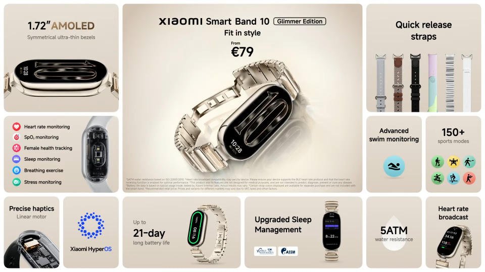 シャオミは、ワイヤレスイヤホン「Xiaomi OpenWear Stereo Pro」や、スマートウォッチ「Xiaomi Watch S4 41mm」、新色の「Xiaomi Smart Band 10 Glimmer Edition」をグローバル向けに発表した。