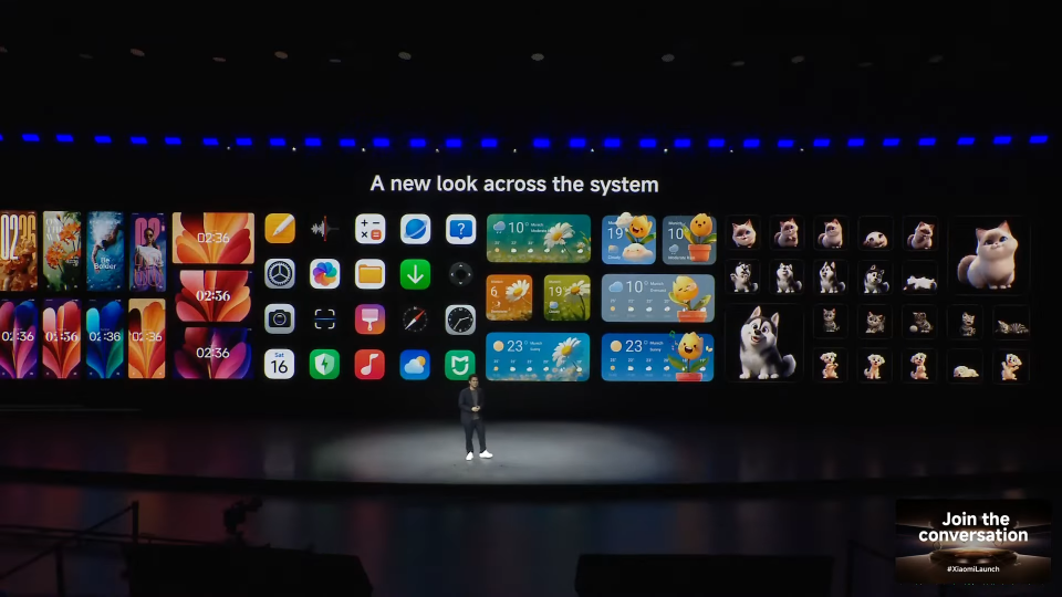 HyperOS 3では、ロック画面やホーム画面のデザインが刷新され、システムアプリアイコンも一新。さらに、新しいアニメ調キャラクターのウィジェットや新形式のウィジェットが利用できるようになった。
