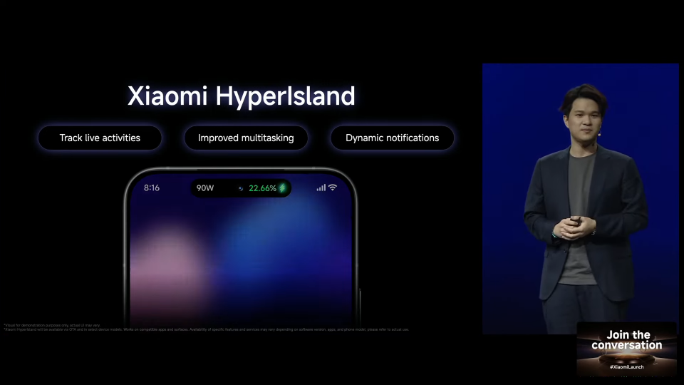 また、インカメラのパンチホール周辺に通知などを表示する「Xiaomi HyperIsland」を搭載。「ライブアクティビティ」機能やマルチタスク、ダイナミック通知に対応する。