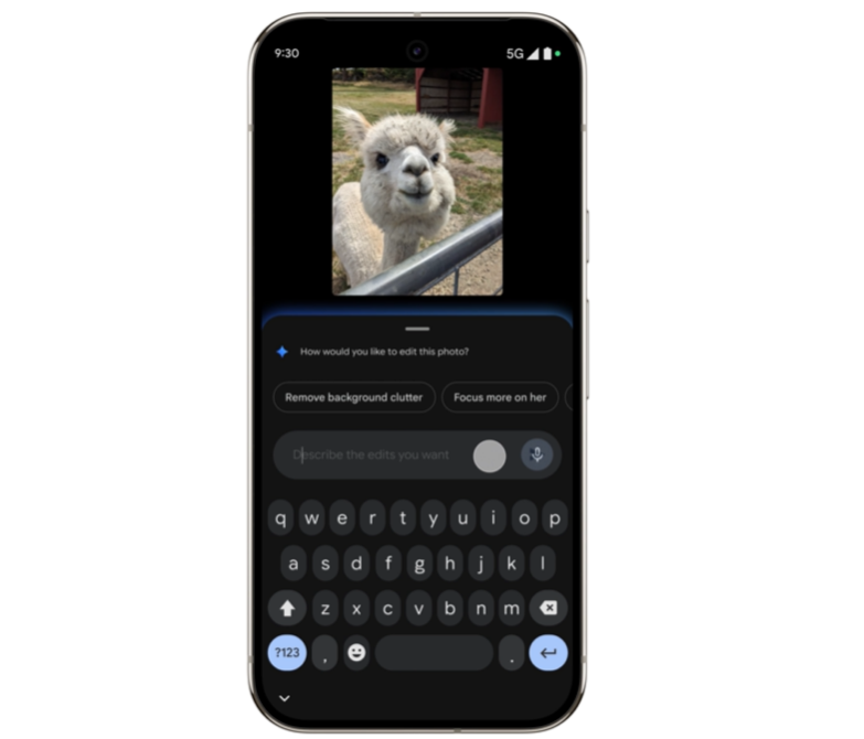 会話型編集は、エディタで「編集を手伝って」をタップし、変更したい箇所を説明するだけで、フォトアプリがGeminiを活用して編集する機能となる。