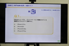 試験では、機種ごとの性能の違いや料金プランの比較、データ移行の方法など幅広い知識が求められる。過去問では、iPhoneの特定機能が利用できるモデルや通信プランの内容に関する問題が出題されている。加えて、実際の接客場面を想定した模擬ロールプレイングを実施。知識だけでなく実践的な部分も評価され資格認定される。