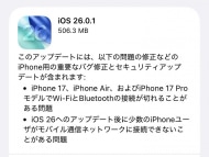 アップル(Apple)は、iPhone向けに「iOS 26.0.1」、iPad向けに「iPadOS 26.0.1」を公開した。Bluetoothの接続が切れることがある問題や、写真にノイズが乗る問題などの修正が図られる。