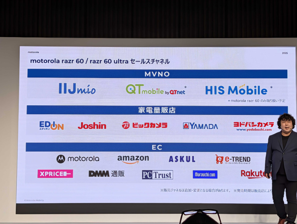 モトローラ・モビリティ・ジャパンは、本日発表したAndroidスマートフォン「motorola razr 60 ultra」を、KDDI(au)やインターネットイニシアティブ(IIJmio)および国内の各チャネルで発売されると発表した。発売は12月になる予定。価格を含め、詳細は後日案内される。