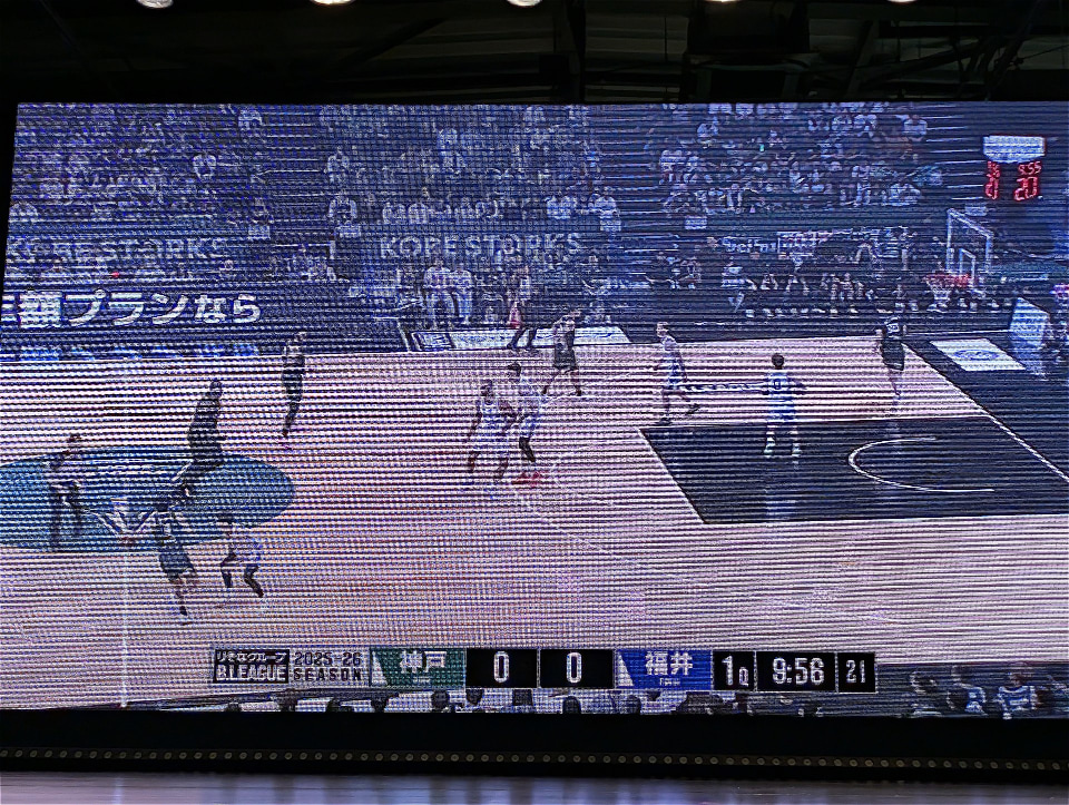 14時ちょうどに試合が始まると、ライブビューイング会場(の一部)の椅子がほんの少し、震え出した。クッション型デバイスのその上に座っていると、クッションはひたすら震えまくっているのだが、音を立てるほどでもなく、目で見ても動いているかどうかわからない。だが、ズンズンズンとお尻の下で動いている。よくよく気を配ると、眼の前の大型ディスプレイで繰り広げられる神戸ストークスの試合となんだか合っている。選手のドリブル、ゴールにボールが触れた瞬間などに合わせて振動しているのだ。