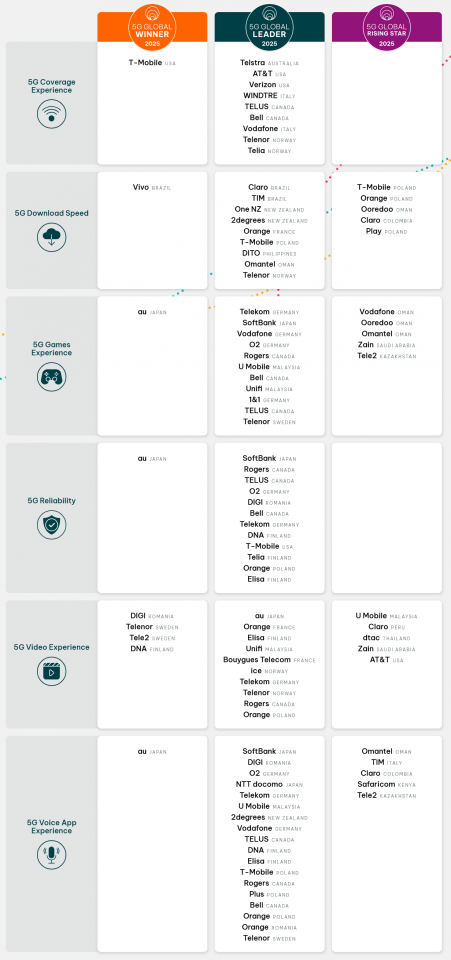 Opensignalは、「5Gグローバル・モバイル・ネットワーク・エクスペリエンス・アワード2025」の結果を発表した。