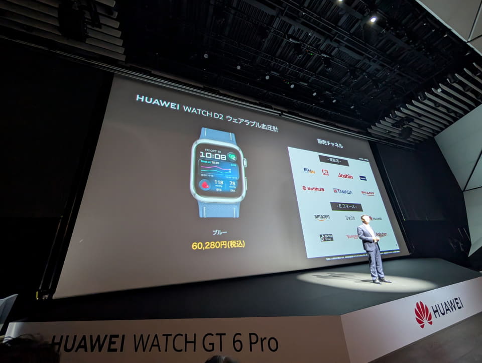 このほか、ウェアラブル血圧計「HUAWEI WATCH D2」では、新しくブルー(コンポジットレザーベルト)が10月14日に発売される。市場想定価格は6万280円。