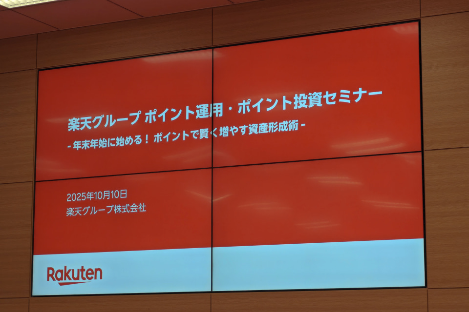 楽天グループは、ポイント運用およびポイント投資に関するセミナーを開催した。テーマは「ポイントで賢く増やす資産形成術」。楽天の各種サービスの紹介に加え、ポイ探代表取締役の菊地崇仁氏がポイント活用の実例を紹介した。