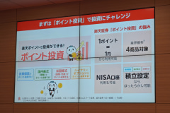 また、資産運用初心者にとって、ポイント運用やポイント投資は現金が減らないため、値動きを体験しながら投資に慣れる練習として最適と説明。ポイント運用は増減してもポイントとして戻り、ポイント投資は売却時に現金化できる点が異なるとし、まずは運用から始めて慣れることを勧めた。