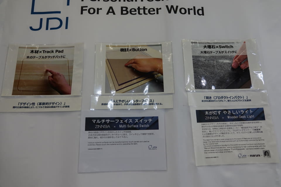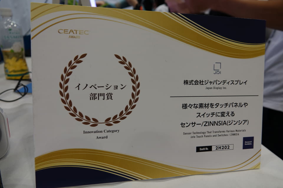 ジャパンディスプレイ、CEATECでさまざまな素材をタッチセンサーにできる「ZINNSIA」を展示