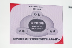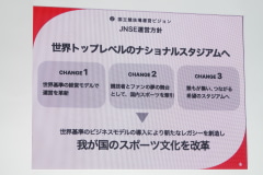 ジャパンナショナルスタジアム・エンターテイメント(JNSE) 代表取締役社長の竹内晃治氏は「年間120日以上のイベント開催と延べ260万人規模の集客を目指す」と展望を示した。