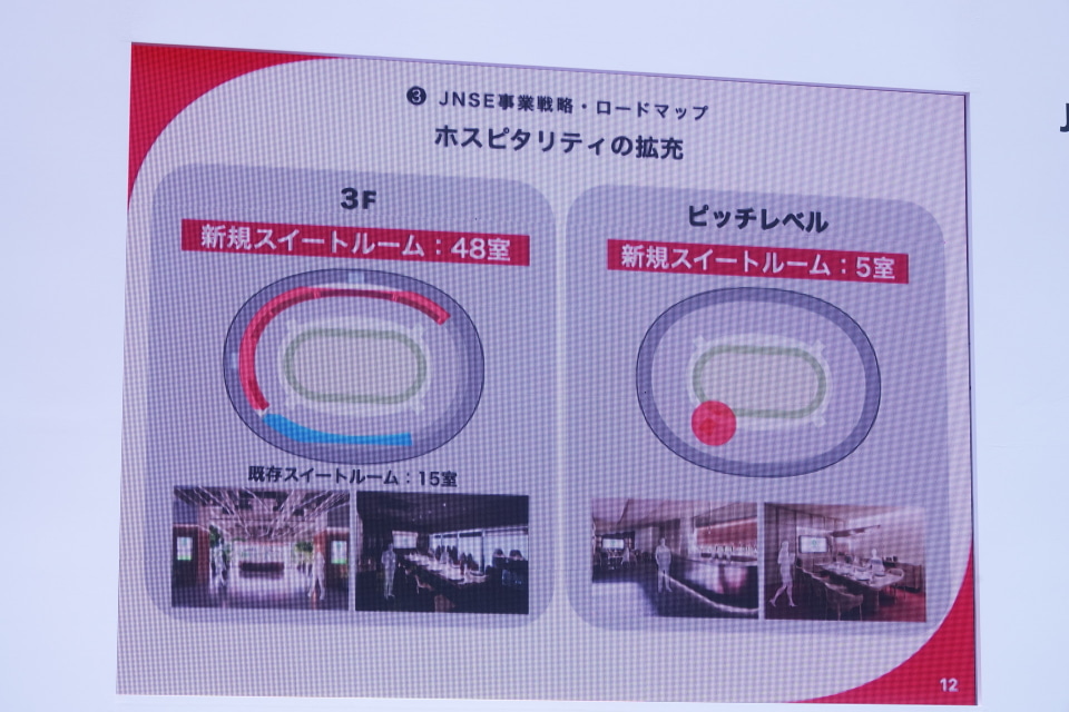 2026年1月に「MUFG スタジアム」として動き出す。その後、4月にはホスピタリティエリアを刷新。3階には、既存の15室のスイートルームに加えて48室のスイートルームを新設、ピッチレベルにも5室のスイートルームを設ける。
