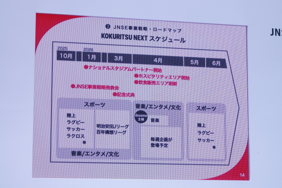国立競技場では「KOKURITSU NEXT」を「2026年からの本格運営フェイズを象徴」するキーワードとして掲げる。
