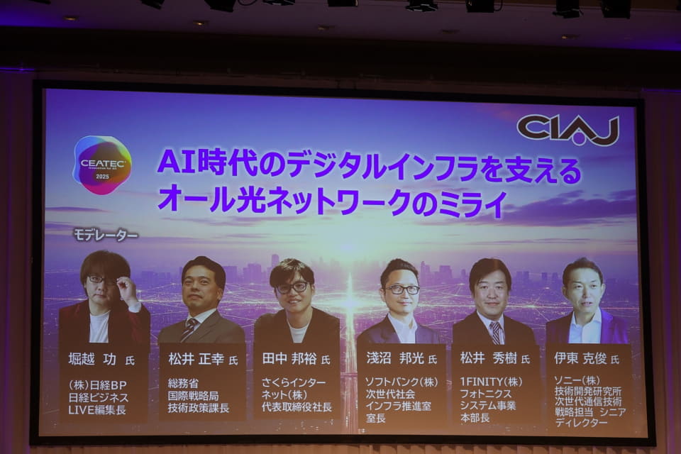 幕張メッセ(千葉県千葉市)で開催されている技術見本市「CEATEC 2025」で14日、「AI時代のデジタルインフラを支えるオール光ネットワークのミライ」というセッションが開催。ハードとソフト、インフラ、行政のさまざまな面からオール光ネットワーク(APN)の未来をテーマにキーパーソンが現状の課題を率直に指摘し、期待される解決策について語った。