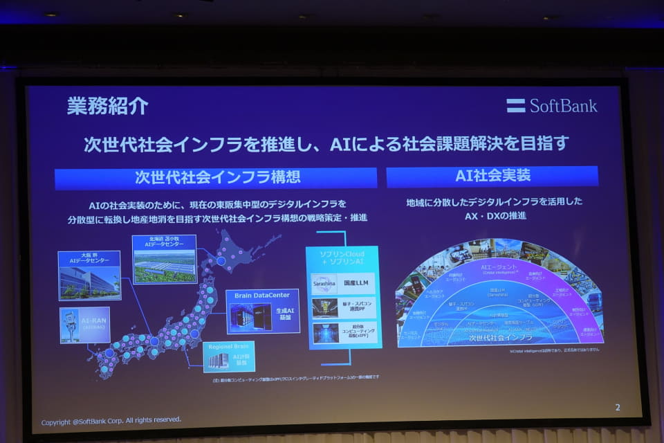 ソフトバンクの淺沼氏は、同社のデータセンター建設について「分散型の次世代インフラを掲げている。北海道の苫小牧に300メガワットの大規模データセンターを建設している。この300メガワットも計画当初は大きなものだと思っていたが、現在ではギガワットクラスのものが世界で登場してきている」と説明。電力供給ができるか、という点で土地を探すのが非常に難しくなってきていると語る。