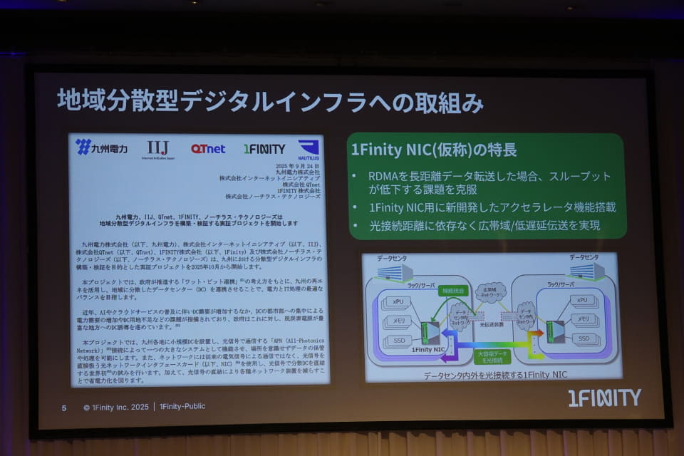 九州でワット・ビット連携を進めている1FINITYの松井氏は、データセンターを集中させてデータを効率的に処理するメリットは認めながらも、「もう持たなくなってきている」と、日本だけでなく世界でも共通の課題になっていると指摘する。