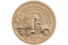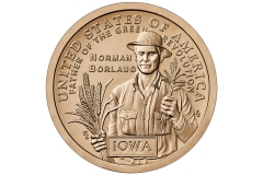 アイオワ州の硬貨は、増え続ける世界人口を養うために強靭な作物を開発したノーマン・ボーローグ博士を称えるデザイン。小麦の束と麦の穂を手にした博士の姿が描かれている。またミネソタ州のデザインは、移動式冷凍(Mobile Refrigeration)をテーマに、初期の前面取り付け型冷凍ユニットを搭載した1940年代のトラックを描く。トラックの側面には、この革新によって輸送可能になった温度管理が必要なさまざまな商品を象徴するアイコンが並ぶ。