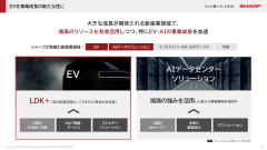 シャープでは、EVを基幹事業のひとつとして進めている。現在、日本でのEV普及率は1%代に留まる。世界的にも市場の落ち込みを見せているものの、長期的には成長の余地があるとして2027年度にも市場への参入を目指す。