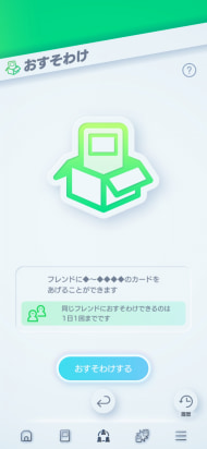 1周年アップデートでは、最新弾までの♢1〜♢4のカードをフレンドにプレゼントできる新機能「おすそわけ」が追加される。相手が持っていないカードや欲しいカードを、1日1枚まで送ることができる。また、「おすそわけ」で受け取れるカードも1日1枚までとなる。