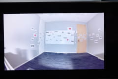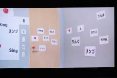 Ringシリーズでは、暗所での撮影機能をちょっとしたゲームで体験する。別の場所に用意された部屋の壁に、さまざまな言葉や絵が貼られており、設置されたRingデバイスのカメラを使って言葉を探すゲームで、部屋は夜間の玄関先のような暗い環境となっている。カズレーザーは、スマートフォンでRingデバイスが撮影する映像を確認しながら、言葉を探していく。時折ピンチアウトして映像を拡大しながらゲームを楽しんだ。