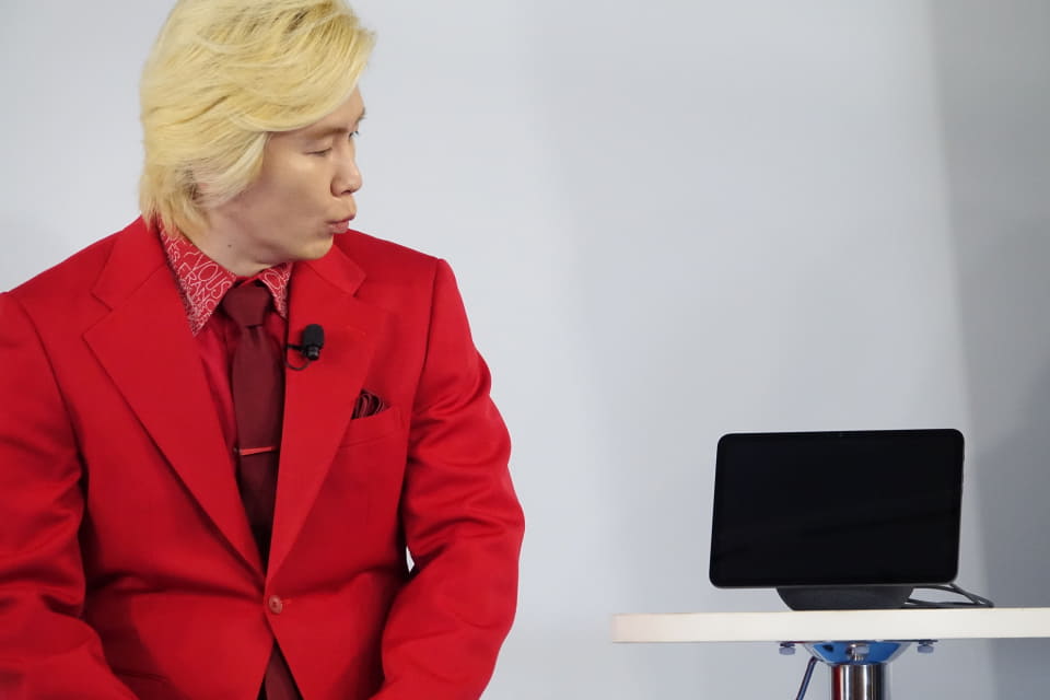 発表会後半には、カズレーザーが登場。今回発表された新製品を体験した。