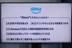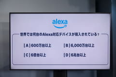 クイズコーナーでは、Amazonデバイスに関する2つのクイズに挑戦。世界のAlexa対応デバイス購入台数の合計やAlexaでできないことを選択肢から選ぶ問題が出題された。