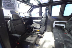 ドローンの横に展示される車両は、自動運転の移動サービスを想定した車両。ティアフォー製の車両で、運転席に当たる場所はハンドルがない。将来的には運転席も反転して乗客のみの空間を作ることも視野に入れる。