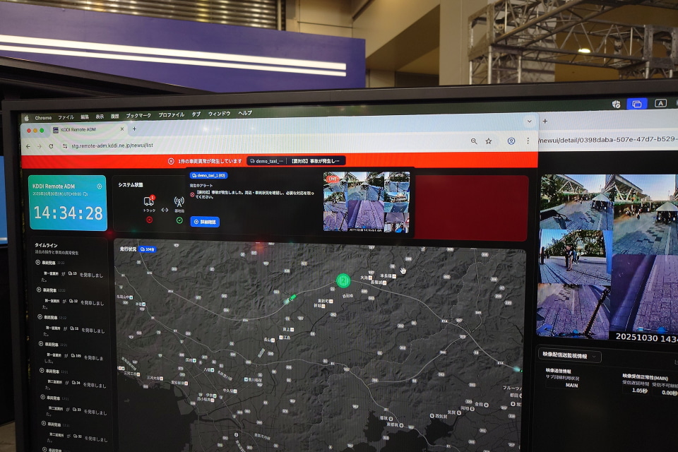 無人運転に対する不安を解消すべく、オペレーター向けにはどの車両がどこを走っていて、どの基地局につながっているかをモニターする仕組みが用意される。事故発生時には警告が表示され、車両のカメラから状況確認もできる。どう対応するかの判断にはAIの助けも借りることができる。