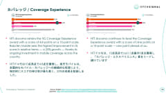 また、カバレッジ、つまり地理的に見た利用率を見てみると、ドコモが5Gと全体の両方で1位を受賞している。日本全体で最も広い範囲で通信ができることを示している。数値を見ると、楽天モバイルの5Gカバレッジスコアが大きく改善しているといい、ウィルコウスキー氏は「日本全体のモバイルカバレッジを広げるために継続的に投資をしたことが功を奏した」とコメントした。
