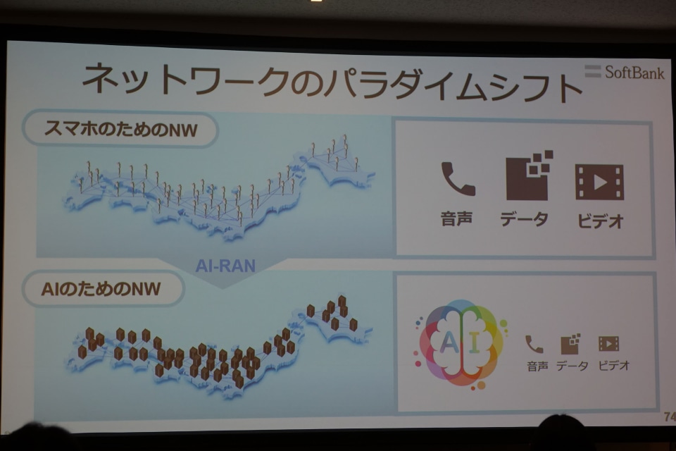 この構想の中核を担うのが「AI-RAN」。従来の無線基地局では専用ハードウェアで行っていた処理を、GPUサーバーで代替することを目指しており、GPUを活用することでRANを動かすことが現実味を帯びてきたという。