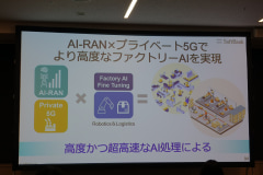 工場では、プライベート5G環境上でAI-RANを展開することで、画像処理などのAIタスクをネットワーク上のGPUリソースで実行できる。これにより、ロボット単体のコストを抑えながら、高速かつ高性能なAI処理を実現できる。