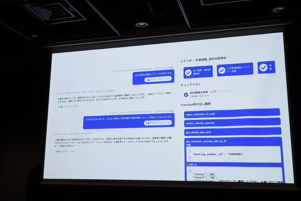 Speech-to-Speechモデルを導入することで、処理の負荷を軽減し、情報の欠落なく、イントネーションや感情も、AIに理解させることができるようになった。X-Ghostでは、OpenAIの「gpt-realtime」を利用しており、処理能力としてはGPT-5相当という。現状でも違和感なく会話ができる仕上がりだが、今後の展望として日本語に特化したモデルが現れれば、さらに会話性能を引き上げられるという。ほかにも、API連携により社内の顧客情報を参照できる機能が用意されている。
