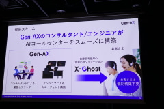 Gen-AX(ジェナックス)とソフトバンクは、コールセンター向けAIソリューション「X-Ghost」(クロスゴースト)の正式提供を開始した。三井住友カードとの実証を経て、一定以上の規模を持つコールセンター向けに販売する。
