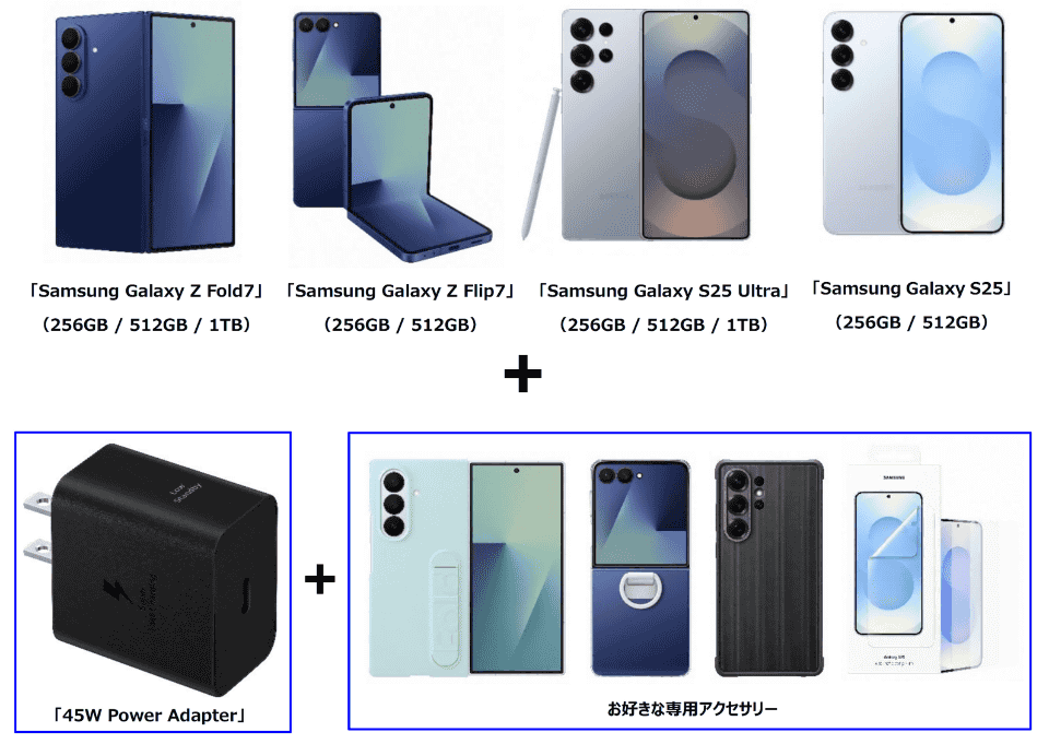 たとえば、「Samsung Galaxy Z Fold7」と「Samsung Galaxy Z Flip7」の2機種は、すべてのカラーとストレージのラインアップで10%割引で購入できる。Galaxy Z Fold7では、256GBモデルが26万5750円→23万9174円、Galaxy Z Flip7の256GBモデルは16万4800円→14万8320円となる。