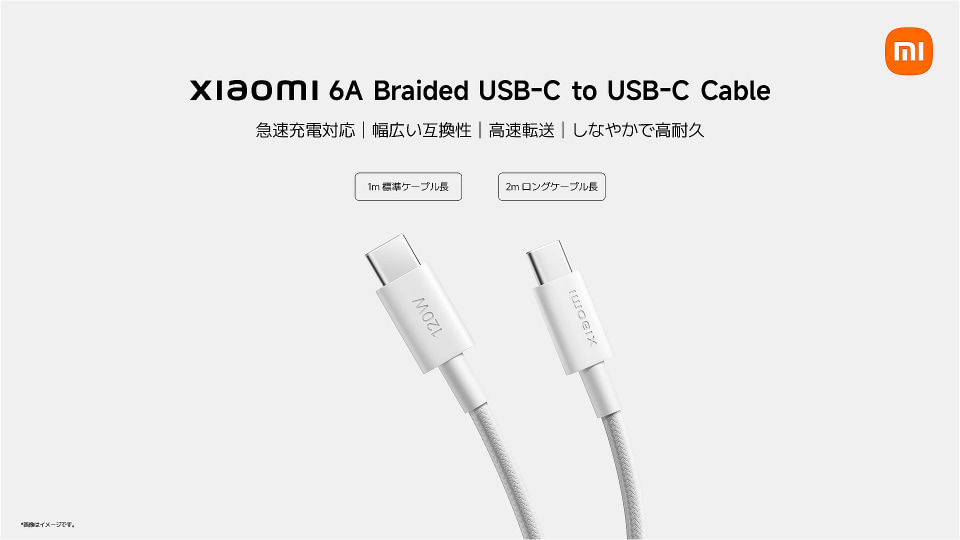 「Xiaomi 6A Braided USB-C to USB-C Cable」は、最大6Aの電流に対応する編み込みタイプのケーブル。データ転送速度は最大480Mbps。Amazonでの価格は、1mモデルが980円、2mモデルが1280円。