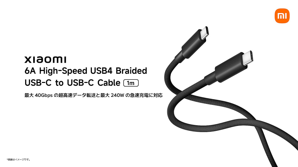 「Xiaomi 6A High-Speed USB4 Braided USB-C to USB-C Cable (1m)」は、最大40Gbpsの高速データ伝送が可能なUSB 4対応ケーブル。市場想定価格は3080円。最大6Aの電流をサポートし、QC2.0/3.0およびPD3.0に対応する。