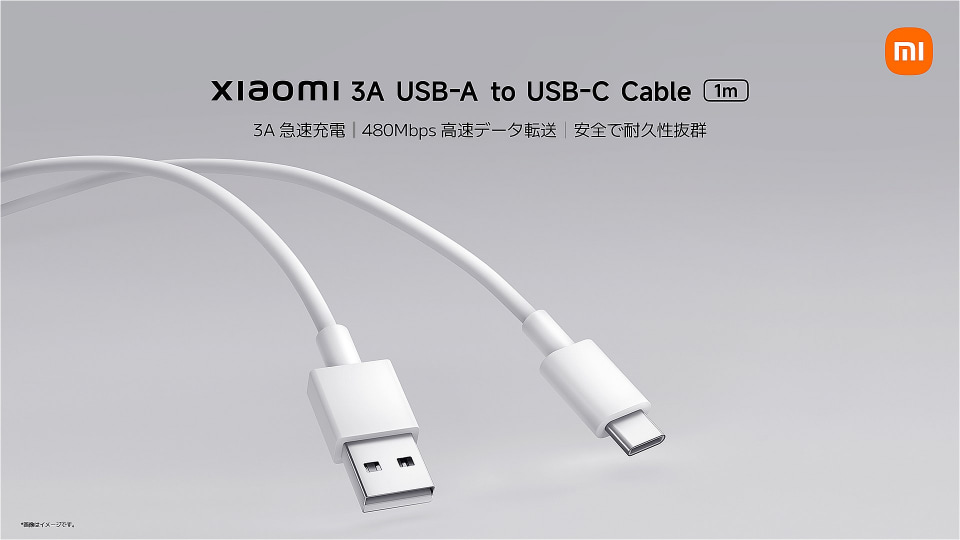 「Xiaomi 3A USB-A to USB-C Cable (1m)」は、TPE素材を採用したUSB-A to USB-Cケーブル。直販サイトや楽天市場での価格は580円。最大3Aに対応し、データ転送速度は最大480Mbps。