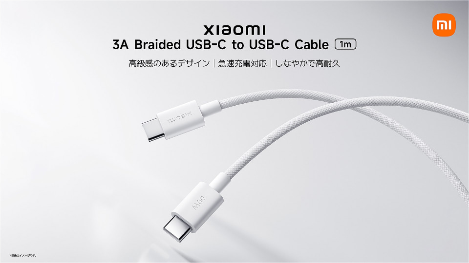 「Xiaomi 3A Braided USB-C to USB-C Cable (1m)」は、最大3A対応の編み込みタイプケーブル。直販サイトや楽天市場での価格は680円。データ転送速度は最大480Mbps。
