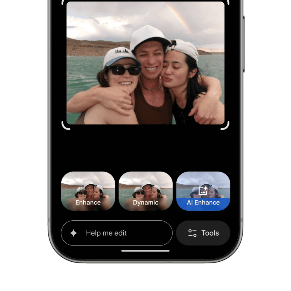 Androidでは5月、Googleフォト10周年にあわせて導入された新しい写真エディタもiOSに導入され、ジェスチャーやワンタップでの提案に加え、自然言語での操作が可能になる。