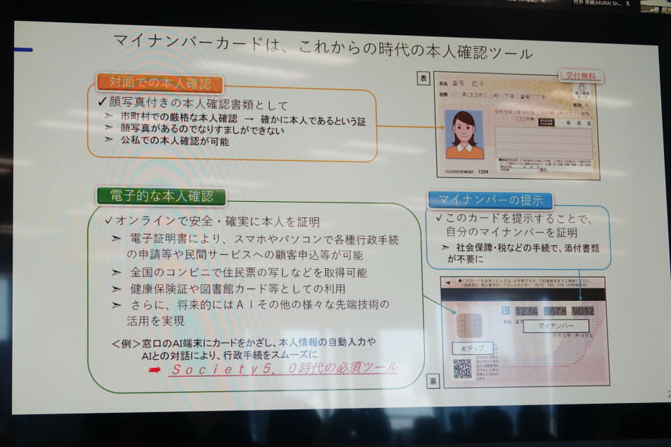 表面では、対面での本人確認として、市町村での厳格な本人確認のもと、顔写真付きの身分証明書として利用できる。一方、裏面のICチップは、読み取ることで電子的な本人確認書類として利用できる。たとえば、内蔵されている電子証明書を使えば、スマートフォンやパソコンで行政手続きができたり、全国のコンビニなどで住民票の写しを取得できたりする。