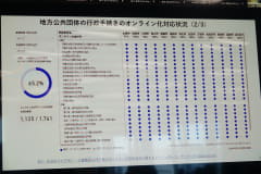 このほか、子育て、介護関係の手続きでは、26の手続き全体の65%ほどがオンラインでも申請できるようになっている。都道府県や市町村により取り組み度合いにばらつきが見られるが、愛媛県などではすべての手続きのオンライン化が完了しており、今後ほかの自治体にも働きかけていくという。