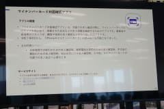 説明会の後には、医療機関に設置されているカードリーダーを体験できる機会があった。スマホ搭載のマイナ保険証を利用するには、iPhoneの場合はiPhoneでの生体認証を行ってからかざす(Walletでの支払いと同様の方法)が、Androidスマートフォンでは電子証明書を使う関係でカードリーダーで暗証番号を入力してからスマートフォンをかざす仕組みになっている。担当者によると、Androidでのマイナカード搭載にあわせて、生体認証で利用できるよう認証方法の統一化を検討しているとしている。