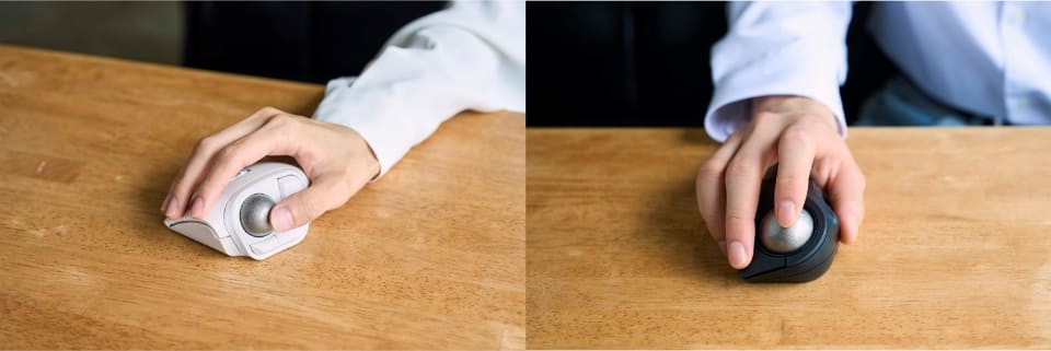 親指操作タイプと、人差し指操作タイプの2種類が販売される。親指操作タイプは通常のマウスとボタン配置が似ており、人差し指操作タイプは指の可動範囲が広い。どちらもクリック時にカチカチ音がしない静音スイッチを採用した。