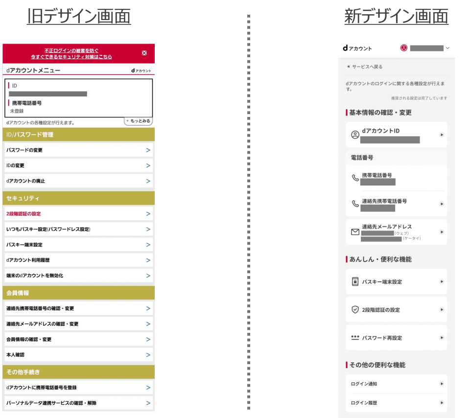 NTTドコモは、dアカウントメニューのデザインを12月中旬から順次リニューアルする。