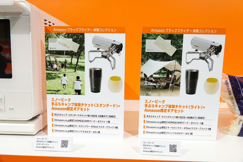 今回のブラックフライデーでは「オルビス ユードット フェイシャルエステ&トリートメントセット」や「くら寿司 くら寿司特製 豪華新春特別セット」、SnowPeakの「手ぶらキャンプ体験チケット(スタンダードプラン)+Amazon限定アウトドアギア3点セット」などの体験をテーマにした商品も、数量限定で用意される。