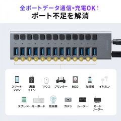 13もUSBポートが連なるハブが登場、サンワサプライから