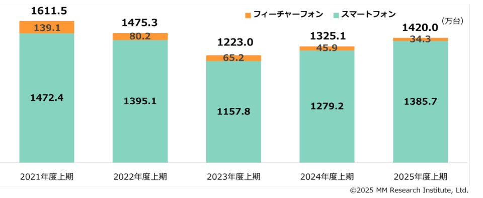 MM総研は18日、「2025年度上期国内携帯電話端末の出荷台数調査」を発表した。