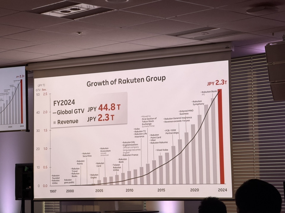 そんな状況でも三木谷氏は「インターネットが情報アクセスを民主化してくれる未来を確信していた」という。楽天は「新しいことに挑戦するクレイジーな企業」として知られ、ビジネスも「うまくいったり失敗したり」したが成長を続け、Eコマースや決済などすべてを合わせたグローバル取扱高(GTV)は44兆8000億円、収益は2.3兆円に達している。