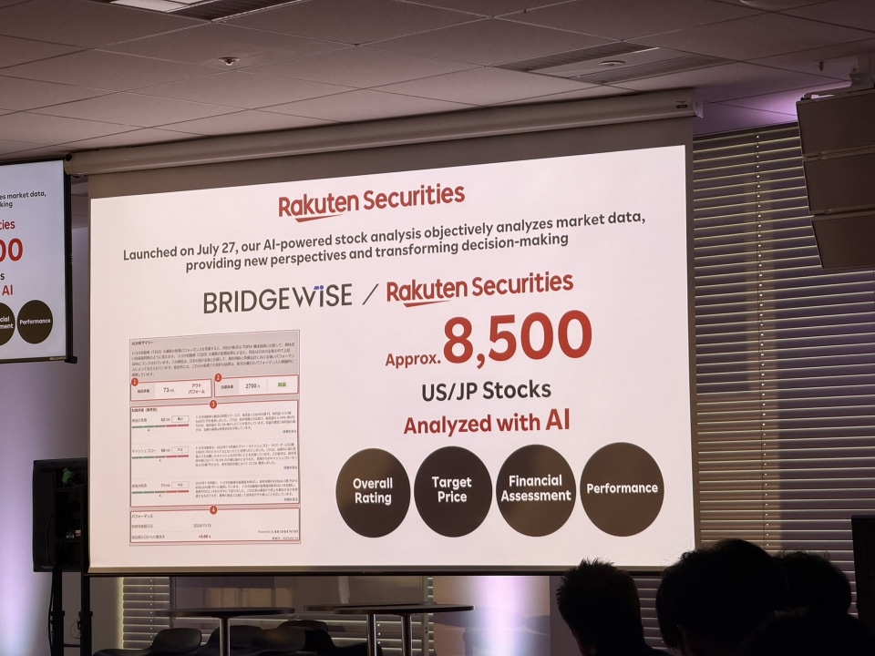 楽天証券では、米国と日本の8500銘柄をAIによって分析・評価している。三木谷氏は「昨日、なぜ楽天の株価が下がったのかは分からない。AIに聞いてみるべきかもしれない」とジョークを交えて紹介した。