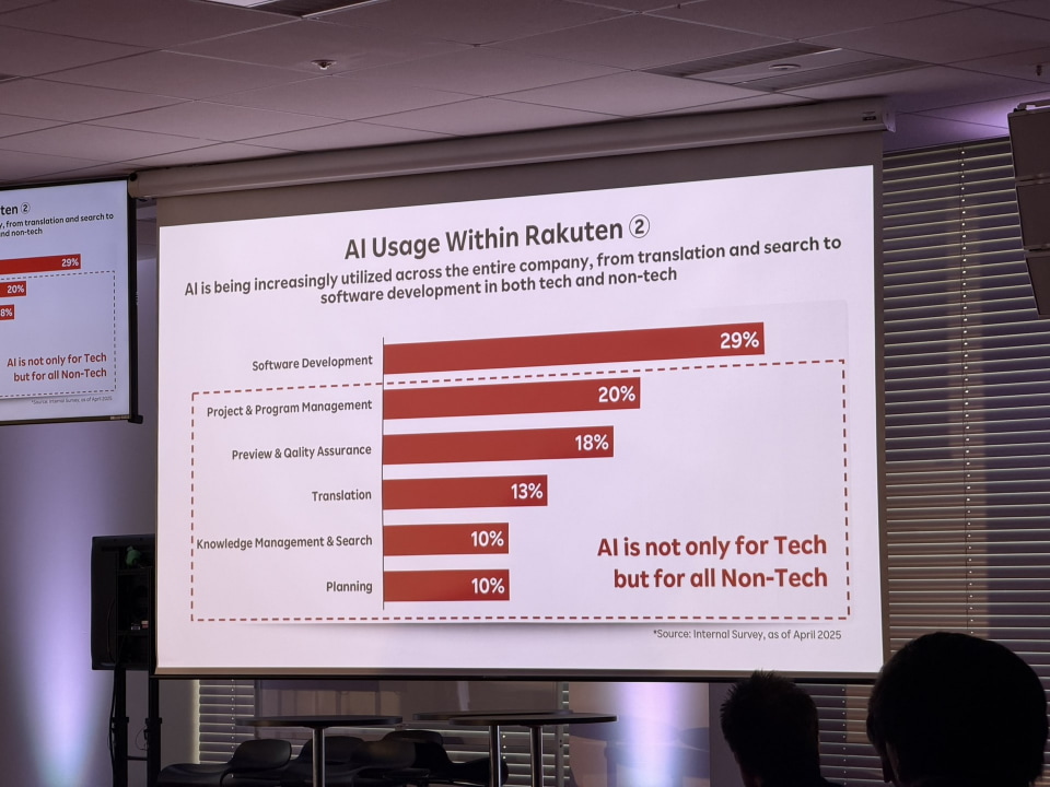 楽天では、グループ内でAIの活用を促進するイベントを開催しているという。先日はAIエージェント作成コンテストを行い、優秀な作品には賞品を贈った。「参加した社員は楽しんでいて、AIエージェントを作るのがどれほど簡単かを経験した」と三木谷氏は成果に満足しているようだった。