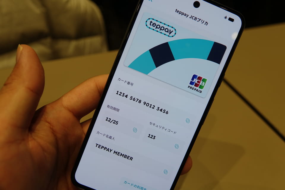 teppayには、JCBブランドのバーチャルカードが備えられている。JCBブランドのデビットカードのように、オンラインのECサイトなどでは、このバーチャルカードを使えば、teppay残高を使ってオンラインで買物できる。